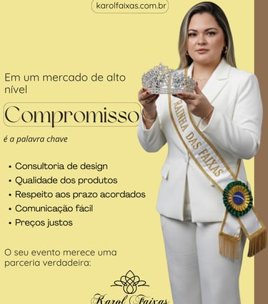 Creamos, producimos y enviamos fajas personalizadas a todo el mundo que deleitan y realzan ocasiones especiales, como concursos de belleza, concursos de misterio y eventos similares, inauguraciones oficiales, eventos como las quadrilhas juninas y mucho más.